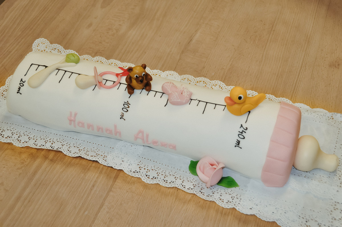 - Handgeformte Marzipanfiguren wie Bärchen, Babyschuhe, Schnuller